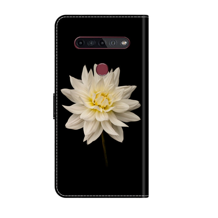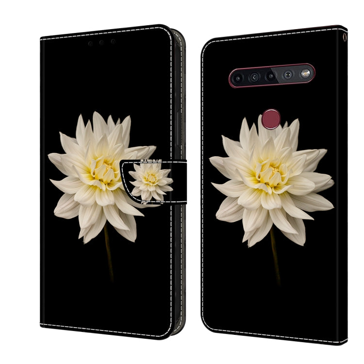 Funda Protectora de Cuero para LG K51S Crystal 3D a Prueba de Golpes (Flor Blanca)