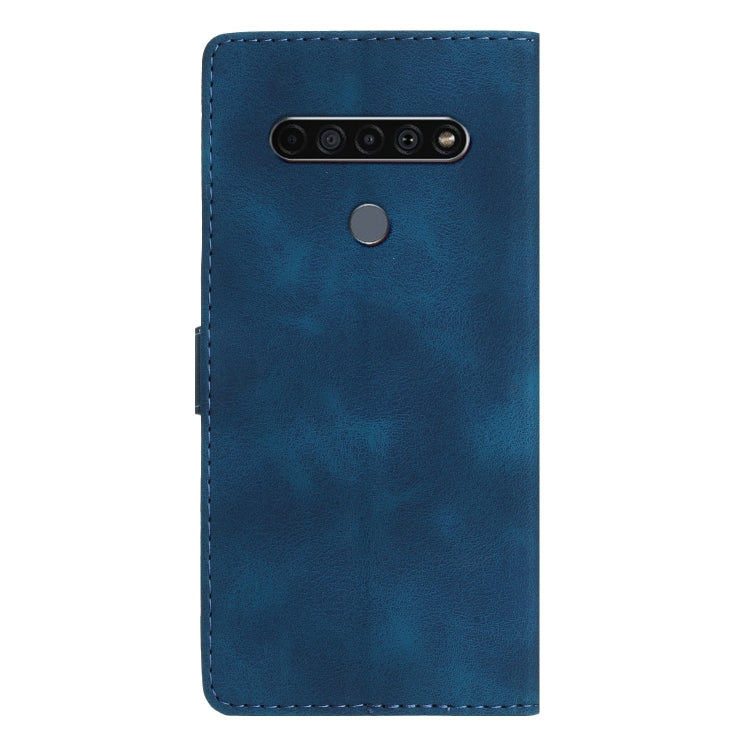 Funda de Cuero para LG K51S con Flor Mariposa y Relieve Patrón (Azul)