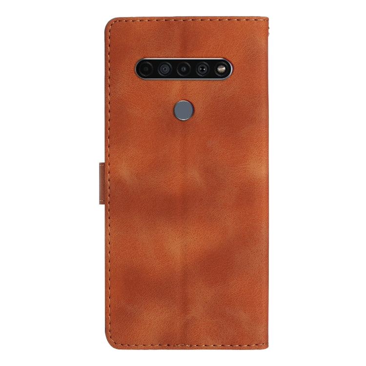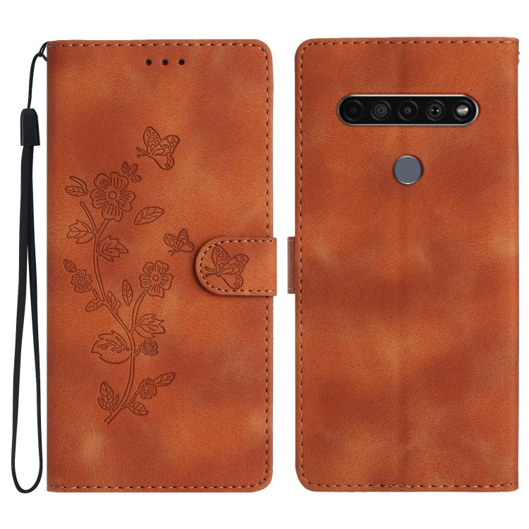 Funda de Cuero para LG K51S con Flor Mariposa y Relieve Patrón (Marrón)