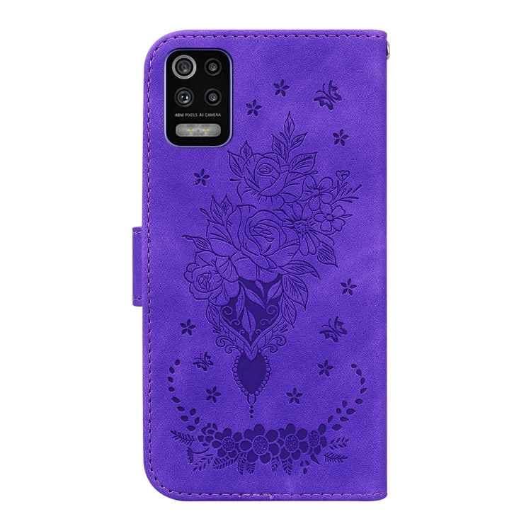 Funda Butterfly Rose para LG K52 / K62 / Q52 con Foothip Fase (Púrpura)
