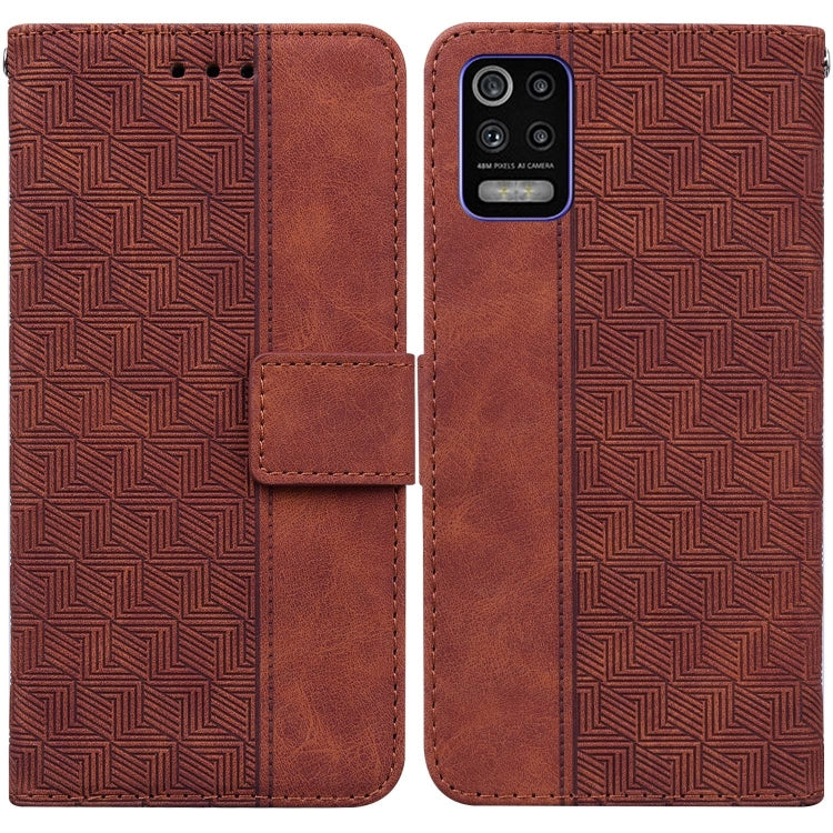 Funda de Cuero Geométrico en Relieve para LG K52 / K62 / Q52 (Marrón)