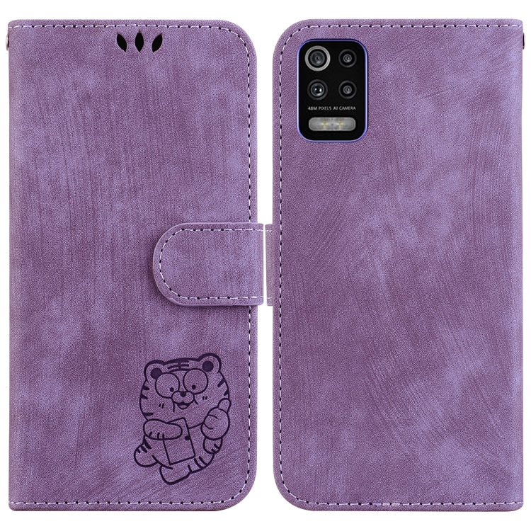 Funda para Teléfono LG K52 K62 Q52 Cuero con Relieve Little Tiger (Púrpura)