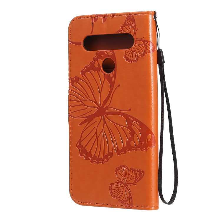 Funda de Cuero LG K61 3D Mariposa con Tapa Horizontal, Soporte, Ranura para Tarjeta y Billetera (Naranja)