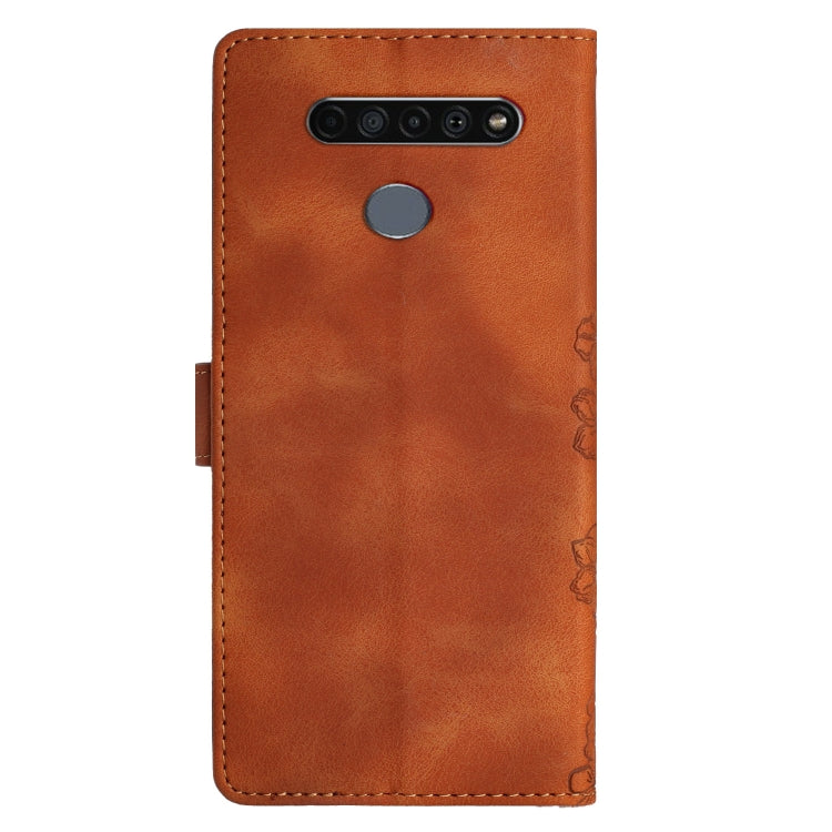 Funda para LG K61 Cherry Blossom Butterfly Skin Feel de PU En Relieve (Marrón)