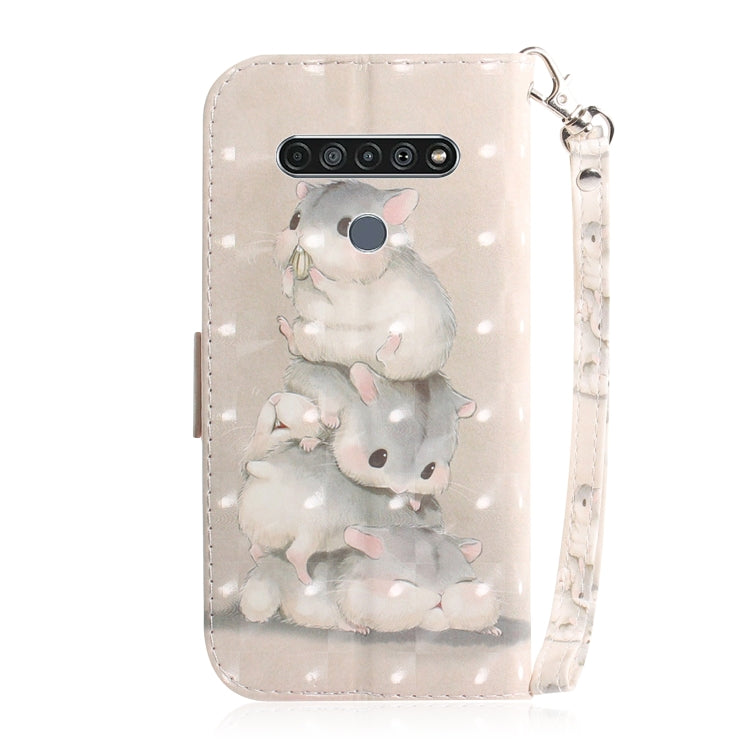 Funda de Cuero Abatible Horizontal para LG K61 con Dibujo 3D, Soporte, Ranuras y Cordón (Ardillas)
