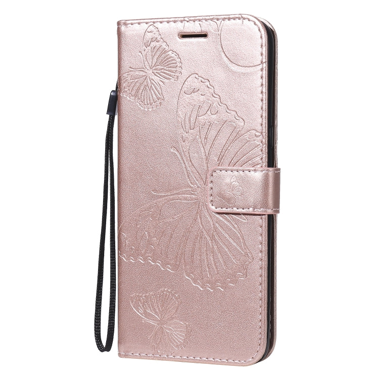 Funda de Cuero para LG K61 con Tapa Horizontal, Patrón Mariposa 3D, Soporte, Ranura para Tarjeta, Billetera y Cordón (Oro Rosa)