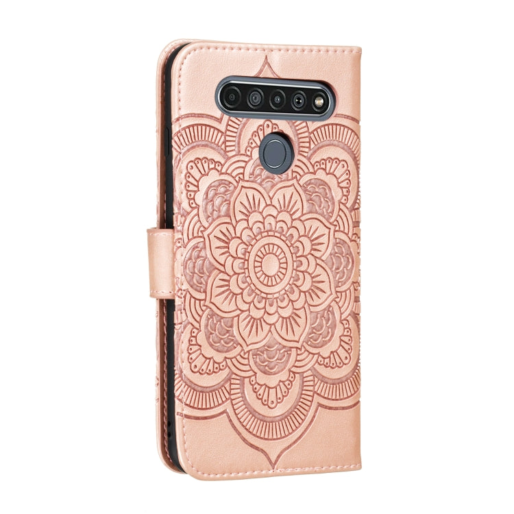 Estuche de Cuero PU para LG K61 Mandala con Tapa Horizontal, Soporte, Ranuras para Tarjetas y Billetera (Oro Rosa)