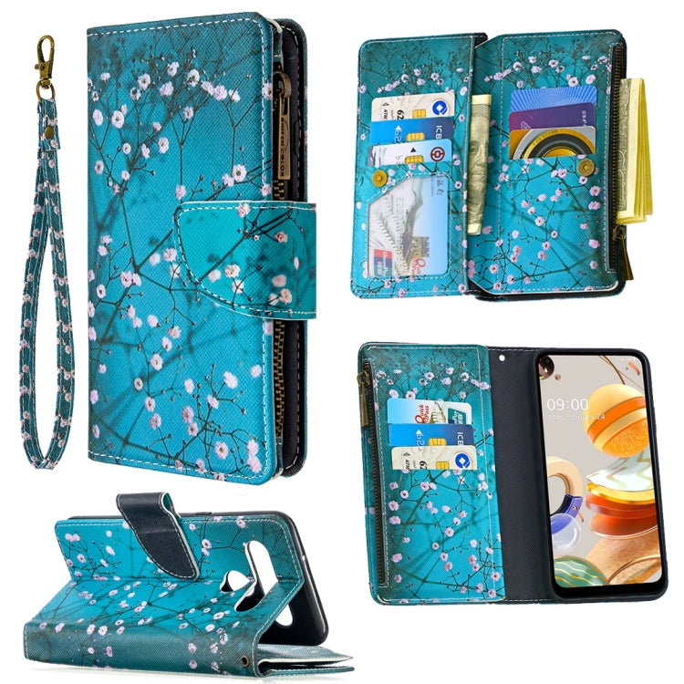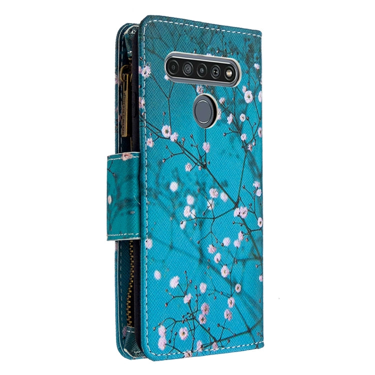 Funda de Cuero para LG K61 con Tapa Horizontal, Soporte, Ranuras para Tarjetas y Billetera (Plum Blossom)