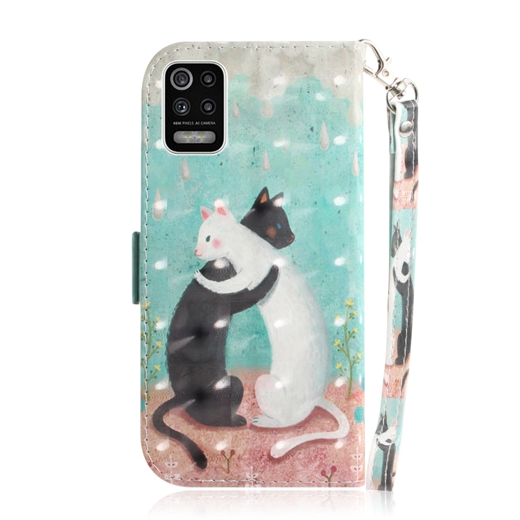 Funda de Cuero Abatible para LG K62 K52 Q52 con Dibujo 3D, Soporte, Ranuras y Cordón (Gato Blanco y Negro)
