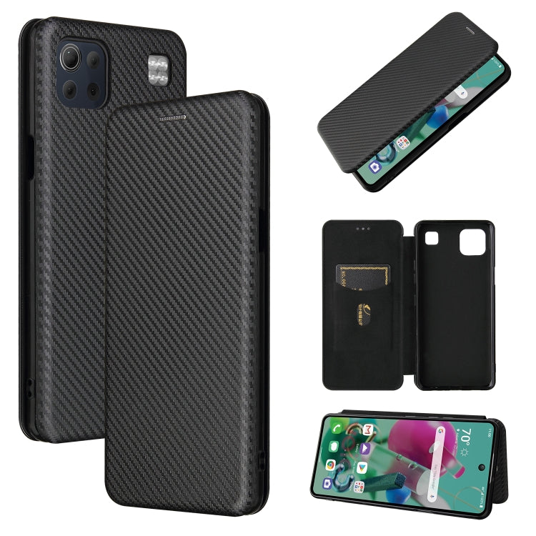 Funda para LG K92 5G Textura Fibra de Carbono Tapa Magnética Horizontal TPU PC PU Ranura Tarjeta (Negro)