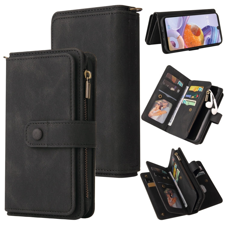 Funda de Cuero Horizontal Flip para LG Stylo 6 con TPU, Titular, 15 Ranuras para Tarjetas, Wallet, Cripper Pocket y Lanyard (Negro)