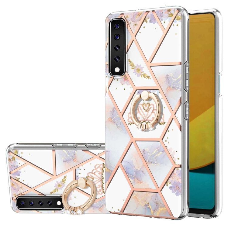 Funda LG Stylo 7 TPU Electrochaplating Patrón Flores Mármol Soporte Anillo (Corona Imperial)