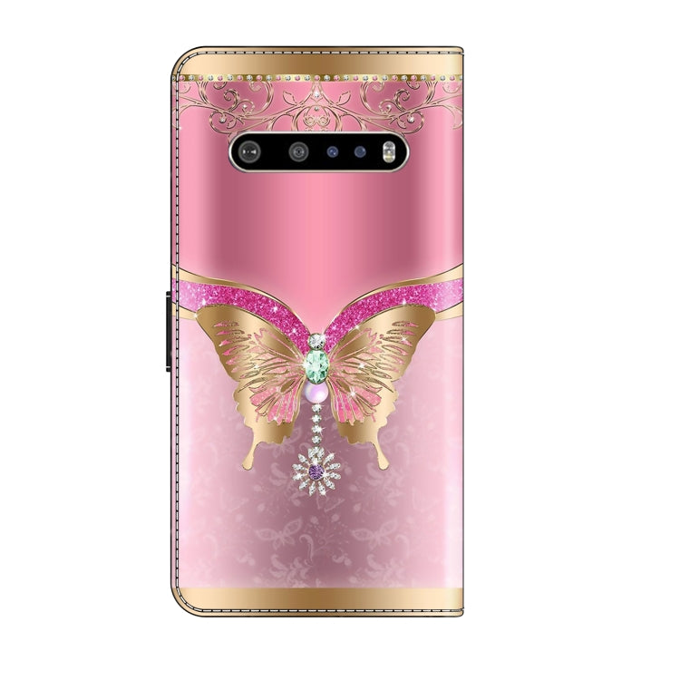 Funda protectora de cuero para LG V60 ThinQ 5G Crystal 3D a prueba de golpes (Mariposa Inferior Rosa)