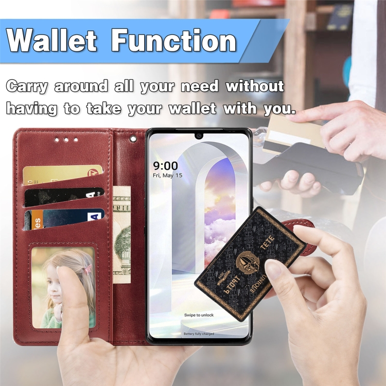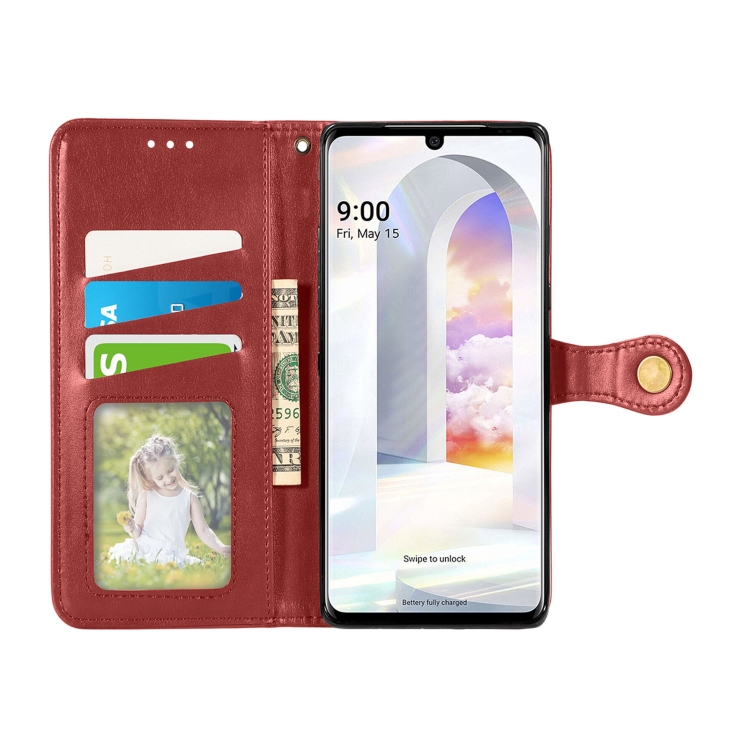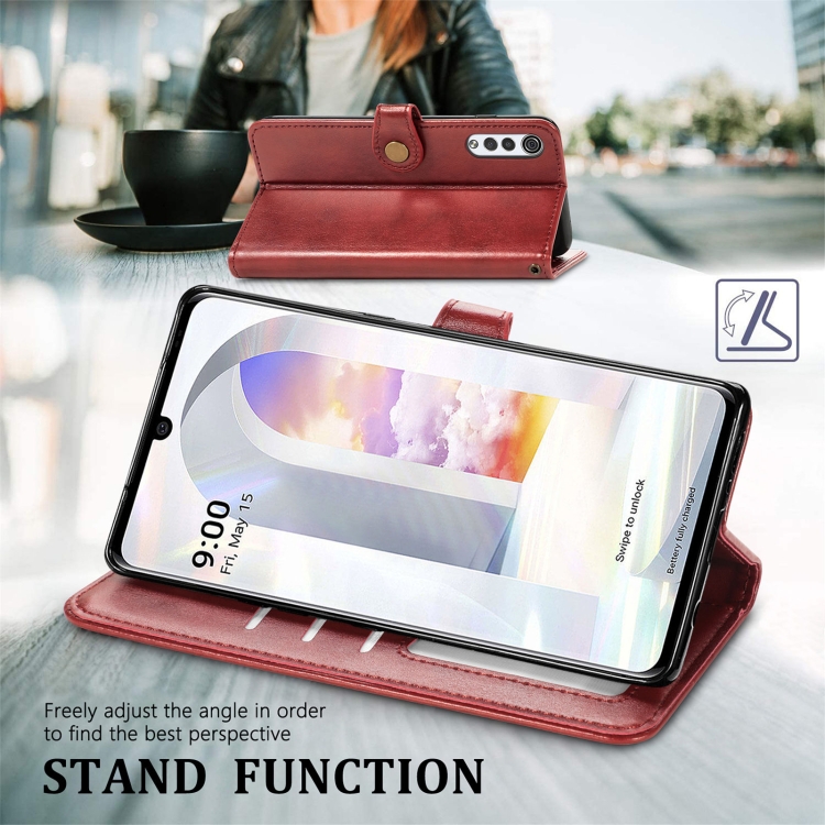Funda de Cuero para LG Velvet 2 Pro con Hebilla, Ranura para Tarjeta, Marco Foto y Soporte (Rojo)