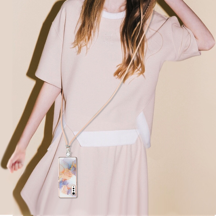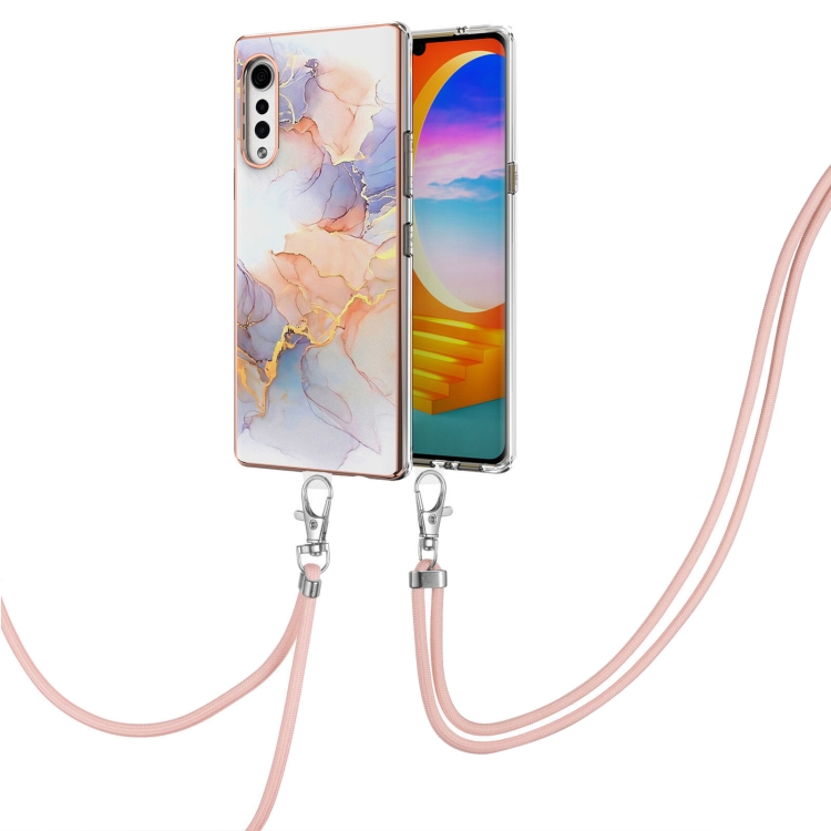 Funda TPU LG Velvet 4G Velvet 5G G9 Patrón Galvanoplastia a Prueba de Golpes con Cordón (Mármol Blanco Lácteo)