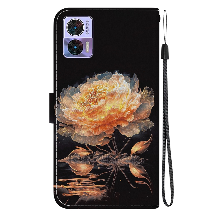 Funda para Motorola Edge 30 Neo y 30 Lite de Cuero con Dibujo Coloreado y Textura de Cristal (Peonía Dorada)