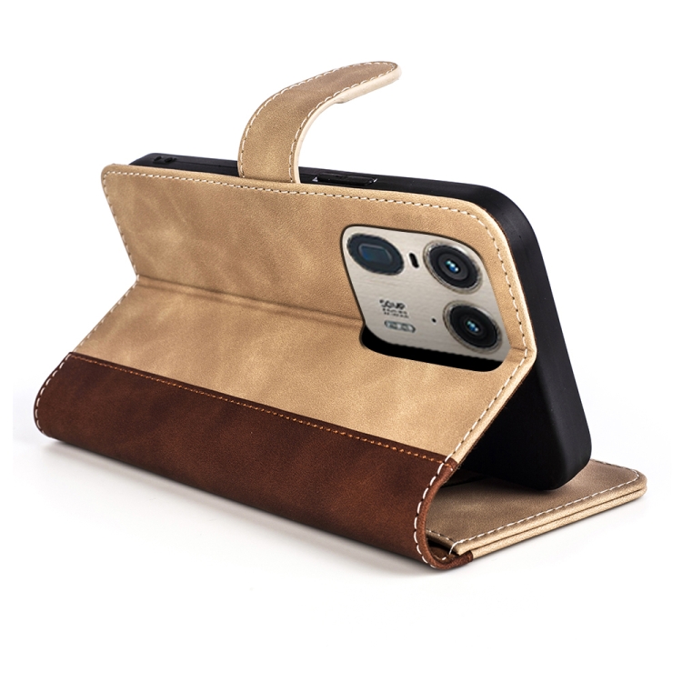 Funda de Cuero para Motorola Edge 40 con Costura Horizontal Flip (Amarillo)