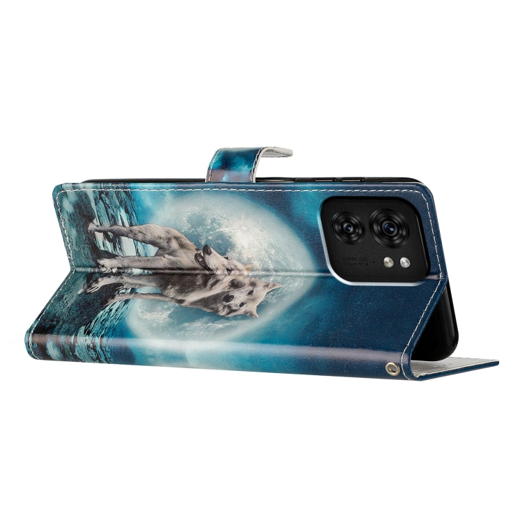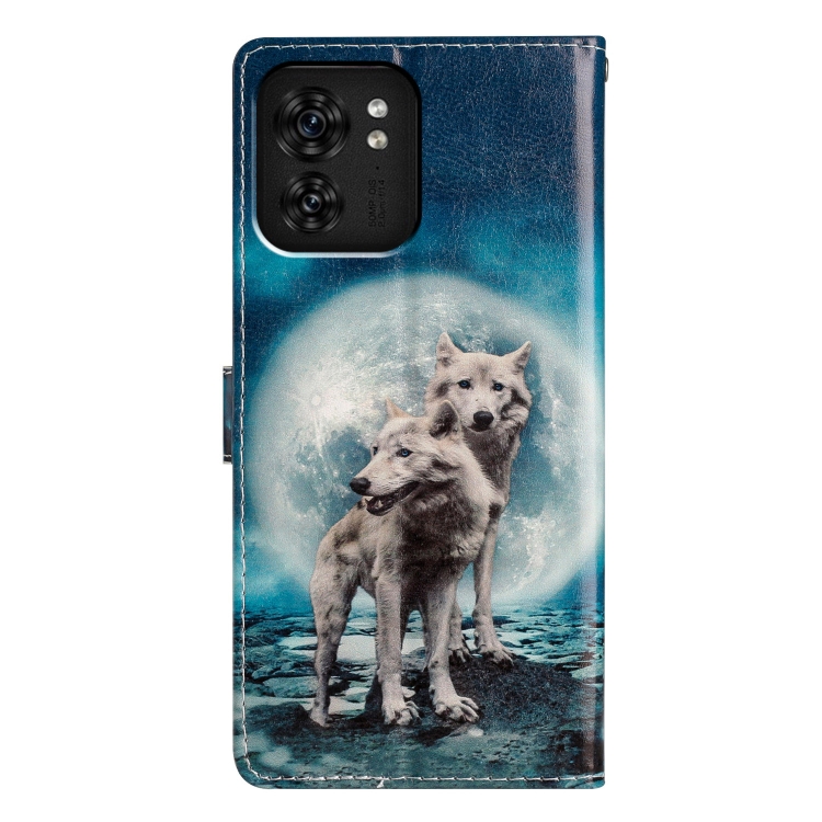 Funda de Cuero para Motorola Edge 40 con Dibujo Coloreado (Lobos Gemelos)
