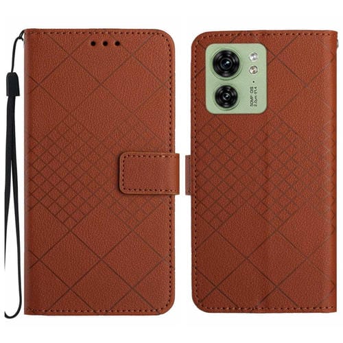 - 1x Funda de Cuero para Motorola Edge 40 con Textura de Rejilla Rómbica (Marrón)