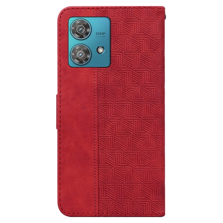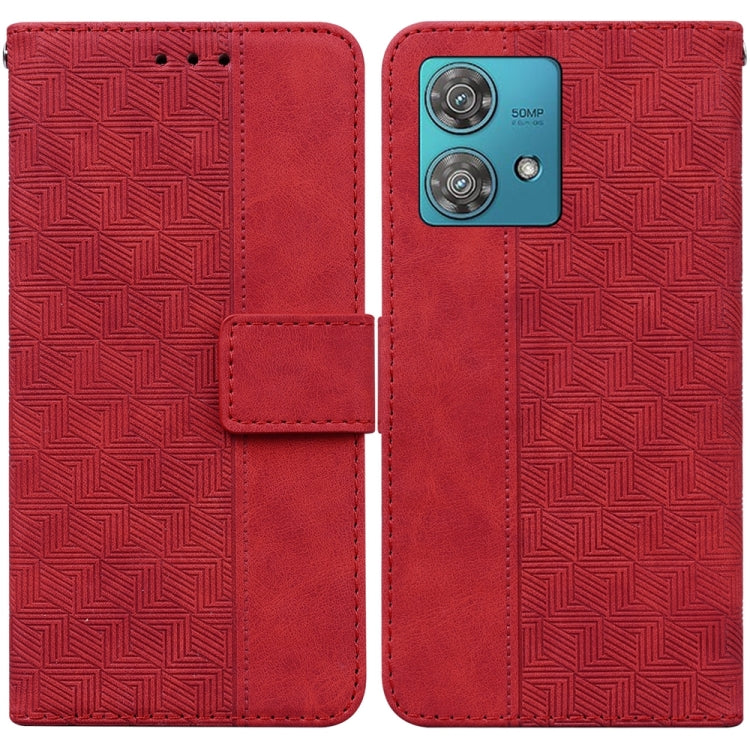 Funda de Cuero para Motorola Edge 40 Neo con Relieve Geométrico (Rojo)
