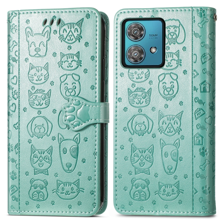 Funda para Motorola Edge 40 Neo de Cuero con Relieve de Gato y Perro (Verde)