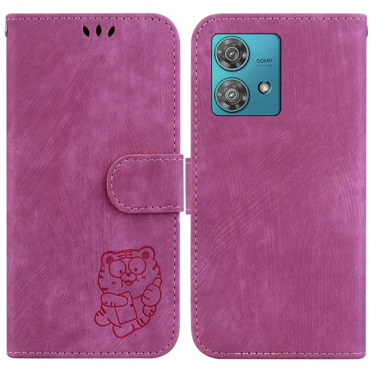 Funda de Cuero para Motorola Edge 40 Neo Little Tiger en Relieve (Rojo Rosa)