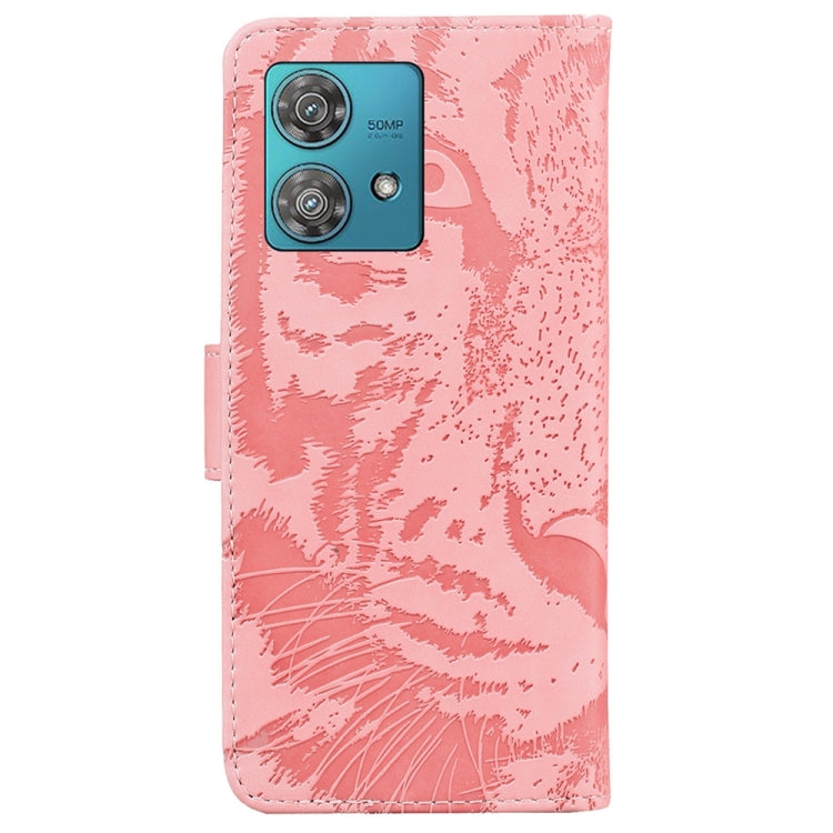 Funda de Cuero para Motorola Edge 40 Neo Tiger con Patrón en Relieve (Rosa)