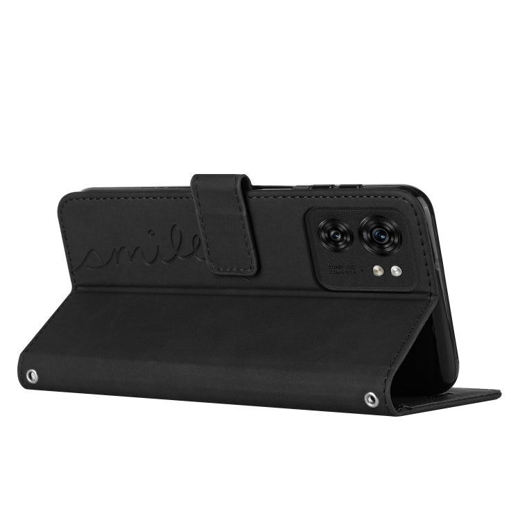 Funda de Cuero para Motorola Edge 40 con Cordón y Diseño Heart Pattern (Negro)