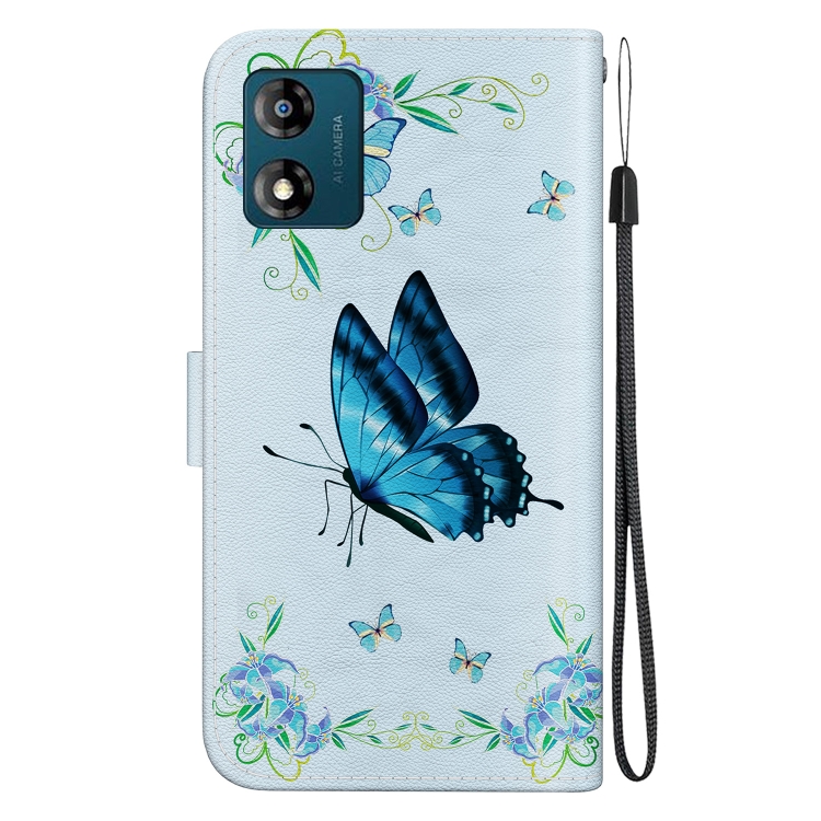 Funda de Cuero para Motorola Moto E13 con Dibujo Coloreado y Textura de Cristal (Pensamientos Azules)