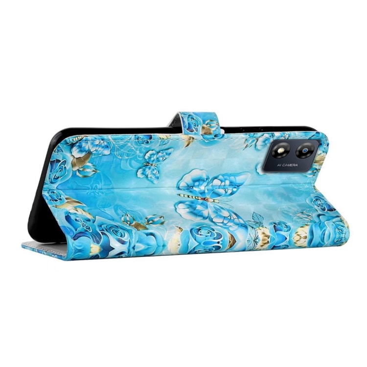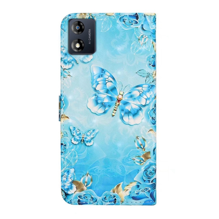 Funda de Cuero para Motorola Moto E13 con Dibujo 3D en Relieve al Óleo (Mariposas Azules)