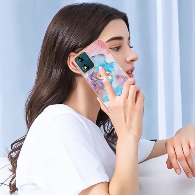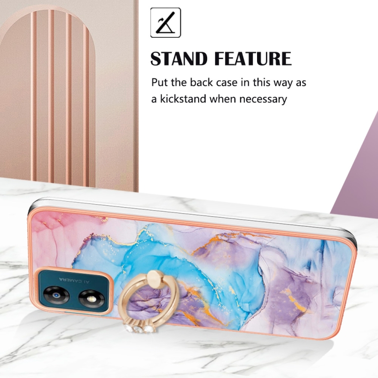 - 1x Funda TPU con Anillo para Motorola Moto E13 Galvanoplastia IMD (Mármol Azul)