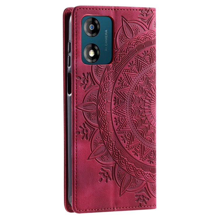 Funda de Cuero Magnética para Motorola Moto E13 Totem en Relieve (Rojo)