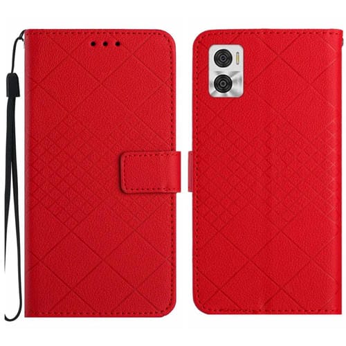 - 1x Funda de Cuero para Motorola Moto E22 / E22I 4G con Textura de Rejilla Rómbica (Rojo)