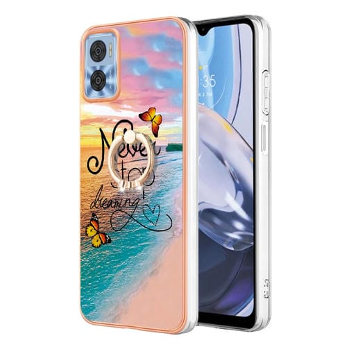 - 1x Funda TPU Galvanoplastia IMD con Anillo para Motorola Moto E22 / E22I (Dream Butterfly)