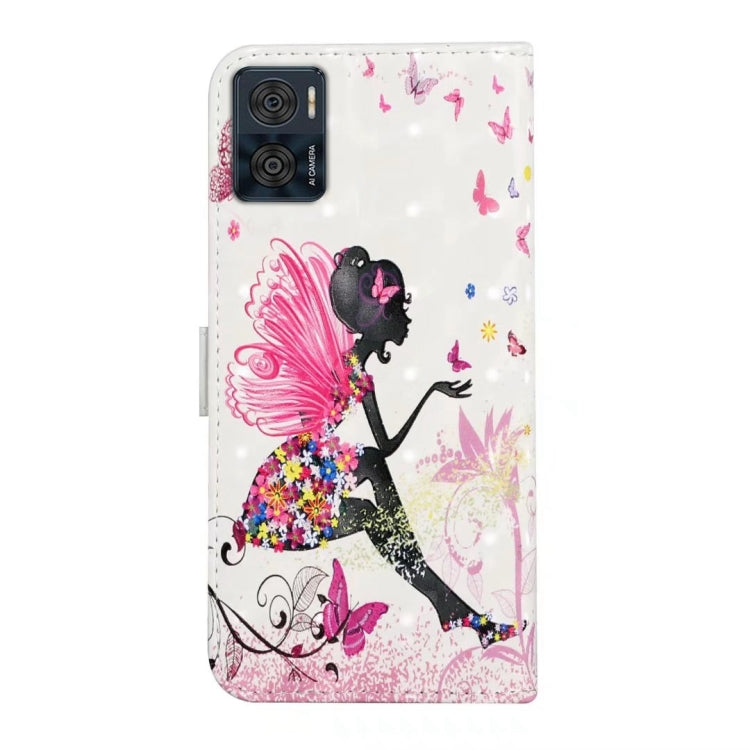 Funda de Cuero Motorola Moto E22 con Dibujo 3D en Relieve al Óleo (Hada de Flores)