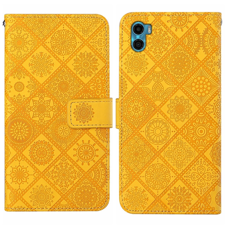 Funda para Motorola Moto E22S / E32 4G Cuero con Patrón En Relieve Estilo Étnico (Amarillo)