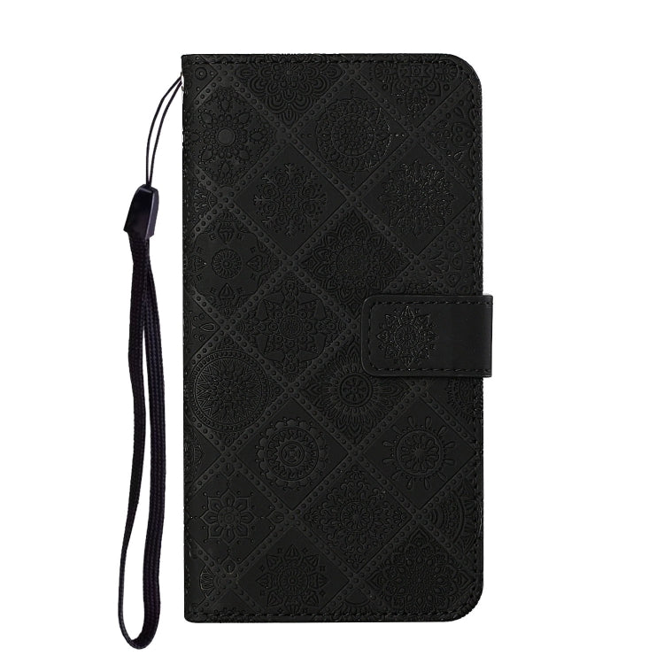 Funda de Cuero para Motorola Moto E22S y E32 4G con Patrón en Relieve Estilo Étnico (Negro)