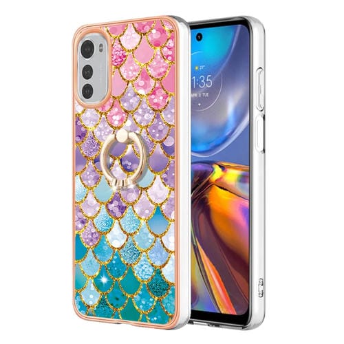 Funda TPU Galvanoplastia IMD con Anillo para Motorola Moto E32 4G / E32S (Escamas de Colores)