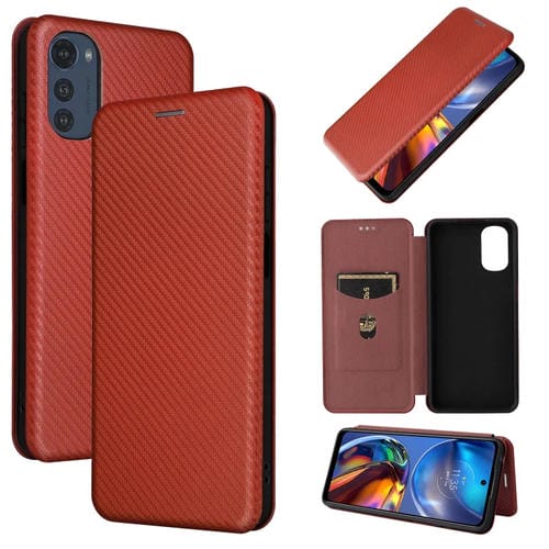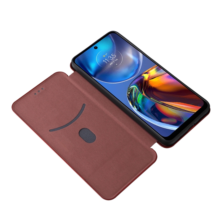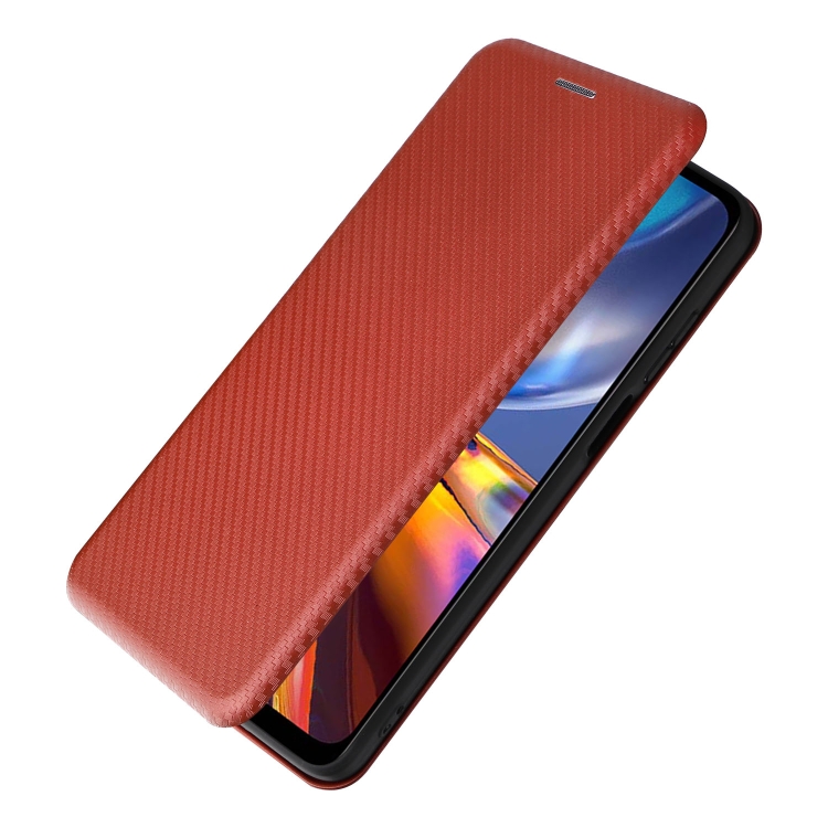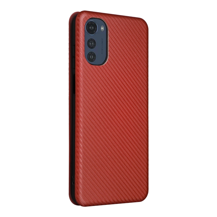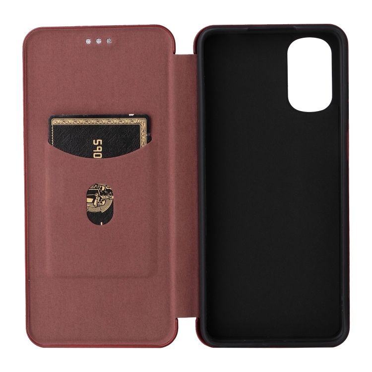 Para Motorola Moto E32 4G Textura de fibra de carbono Magnetic Horizontal Flip Cuero Caja (marrón)