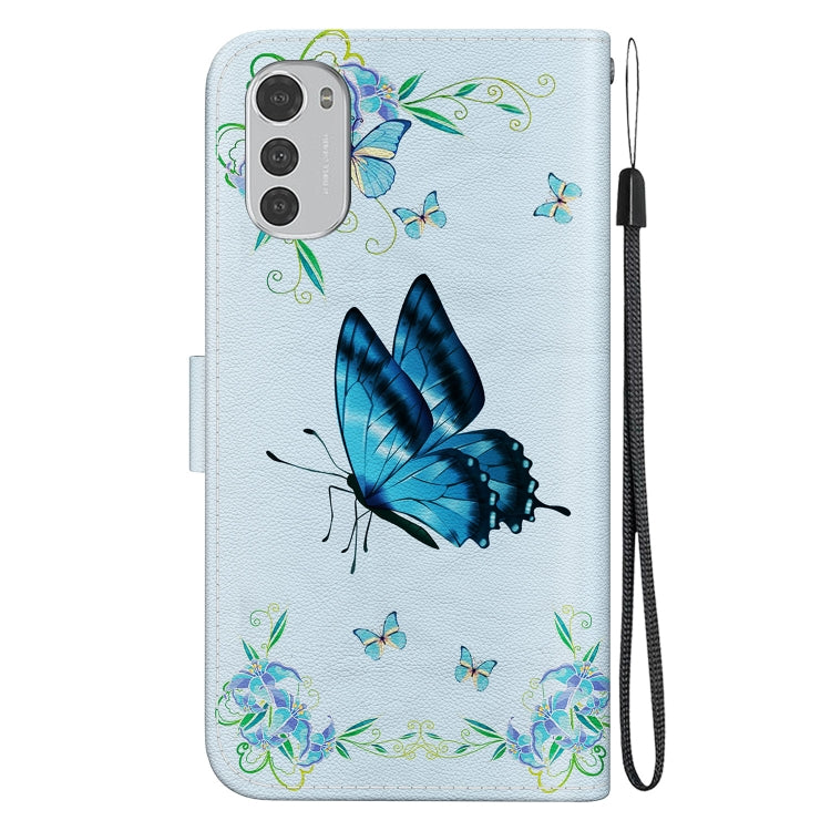 Funda de Cuero para Motorola Moto E32 con Dibujo Coloreado y Textura de Cristal (Pensamientos Azules)