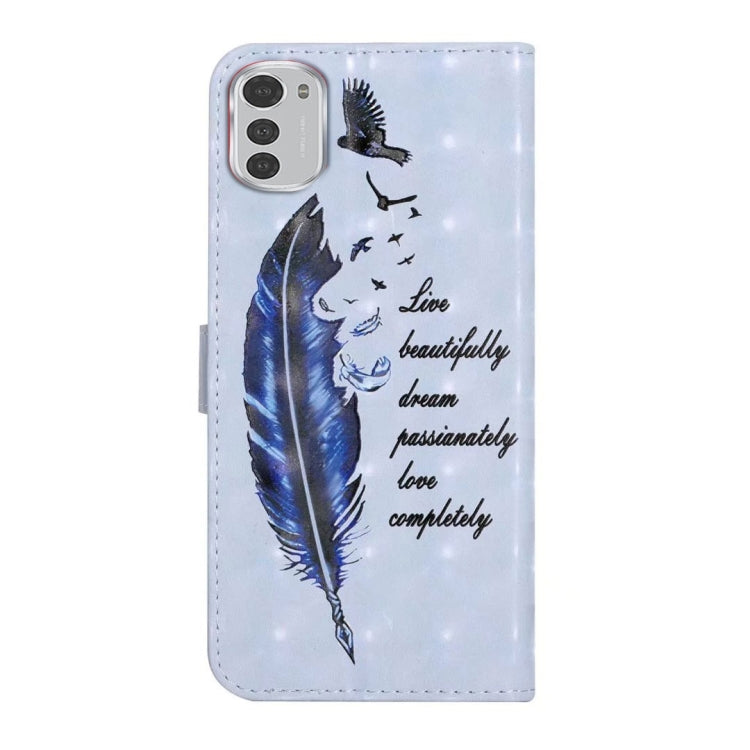 Funda de Cuero para Motorola Moto E32 con Dibujo 3D en Relieve al Óleo (Pluma Azul)