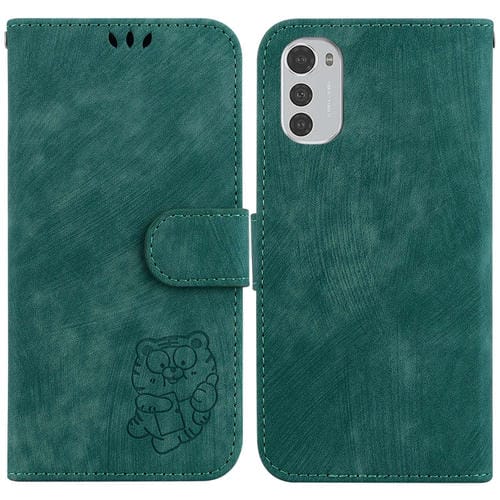 For Motorola Moto E32 Little Tiger Embossed Leather Phone Case(Green)
