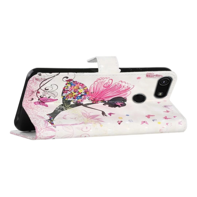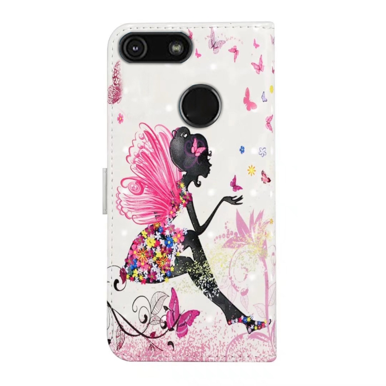 Funda de Cuero para Motorola Moto E6 Play con Dibujo 3D en Relieve al Óleo (Hada de Flores)
