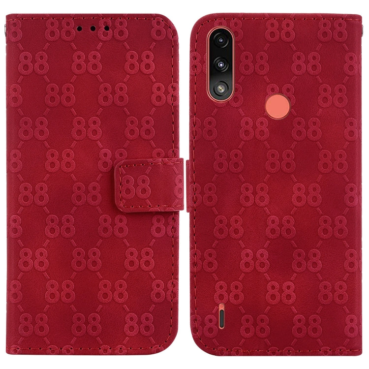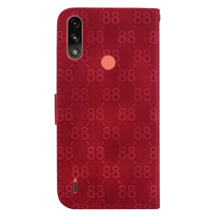 Estuche para Motorola Moto E7 Power y E7I Power de Cuero en Relieve Doble Forma de 8 (Rojo)