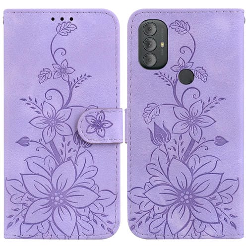 Funda de Cuero para Motorola Moto G Power 2022 con Relieve Lily (Púrpura)