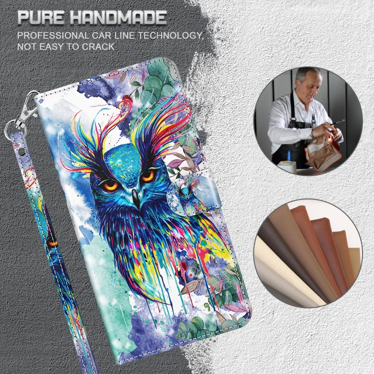 Funda TPU + PU para Motorola Moto G Power 2022 con Patrón de Pintura 3D (Búho de Acuarela)