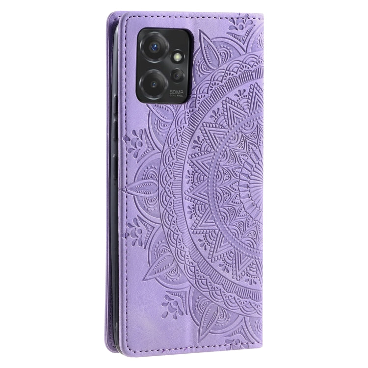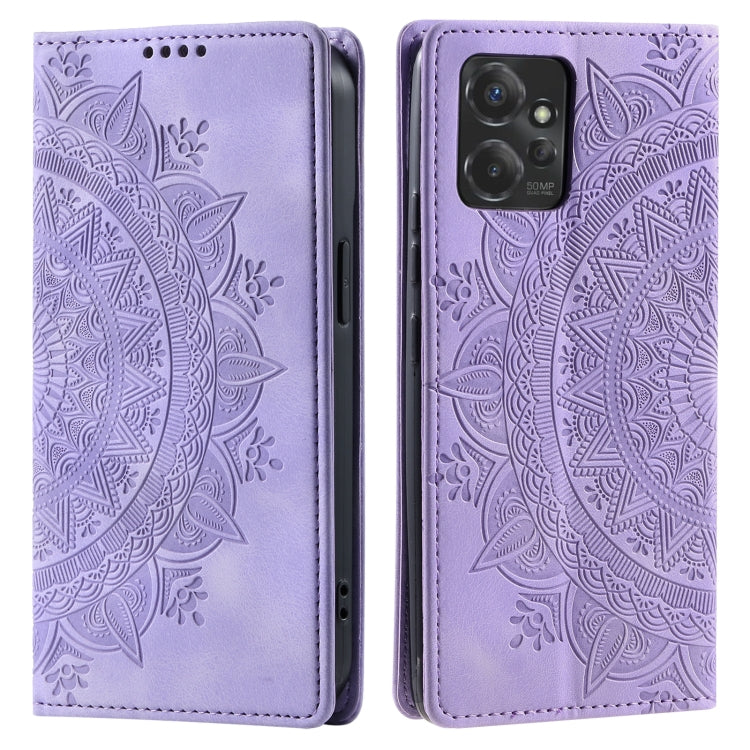 Estuche para Motorola Moto G Power 5G 2023 de Cuero Magnético con Relieve de Tótem (Púrpura)