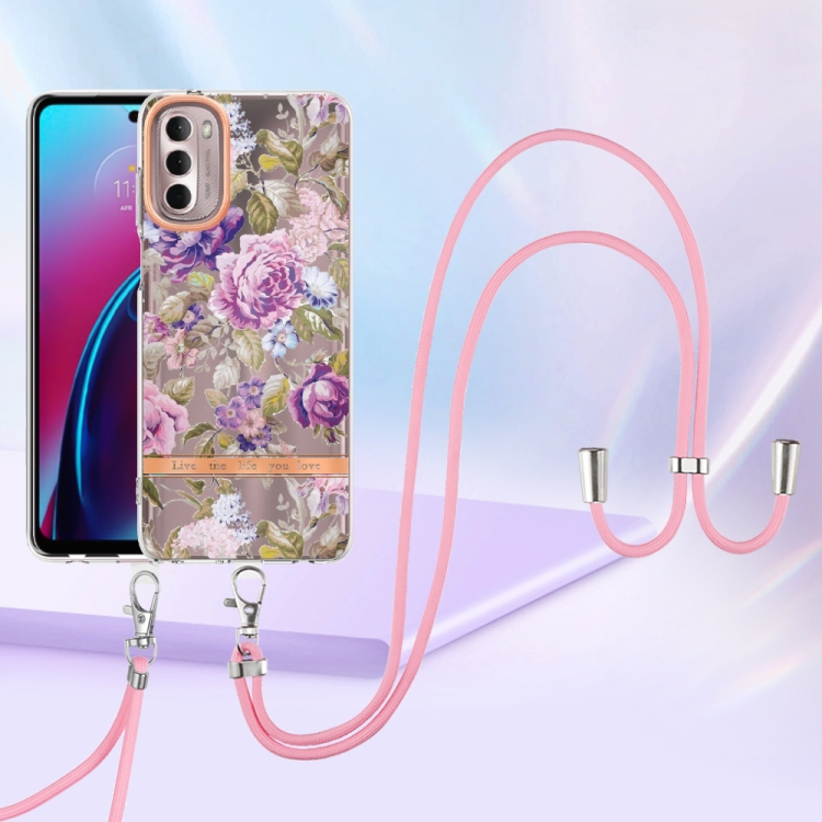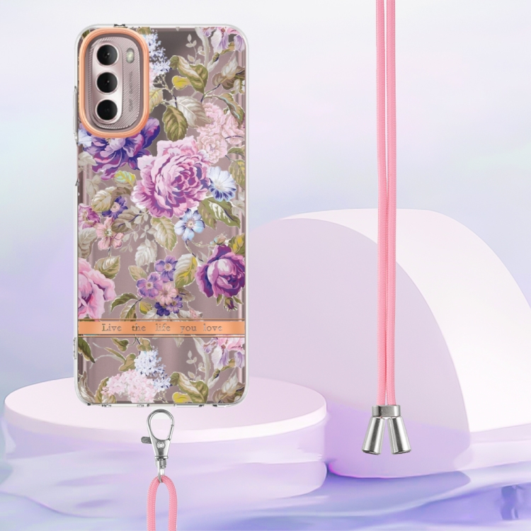 Para Motorola Moto G Stylus 2022 4G Flowers Series Case de teléfono TPU con cordón (peonía púrpura)