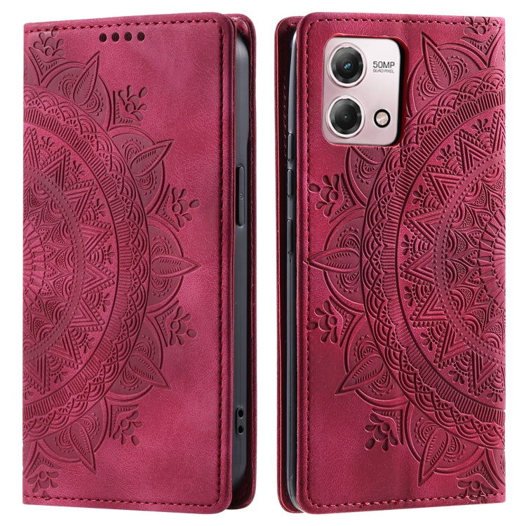 Funda de Cuero Magnética Totem para Motorola Moto G Stylus 2023 4G en Relieve (Rojo)