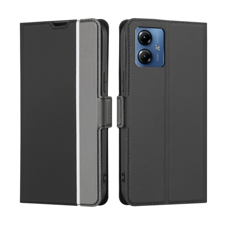 For Motorola Moto G14 4G Twill Texture Side Button Leather Phone Case(Black)